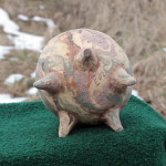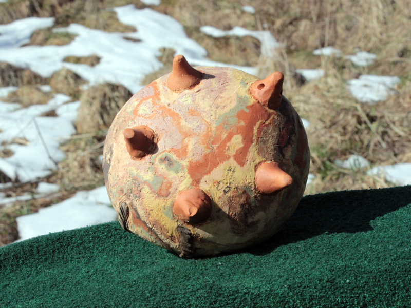 Hneď ako povolili mrazy na začiatku roku som naložil pec novými výrobkami, aby som si odskúšal výrobnú technológiu a overil, či to robím dobre a môžem v tomto procese pokračovať. A oplatilo sa. Človek by povedal, že keď už 21. krát pálim v tejto peci, že ho už nič neprekvapí, ale opak je pravdou. Každý výpal je trochu iný – stačí inak rozložiť výrobky v peci a už sa teploty správajú úplne inak. Alebo stačí drobná zmena smeru vetra, teploty, tlaku a vlhkosti vzduchu…ale zvládol som to, aj keď to už vyzeralo, že nevyženiem teplotu na dostatočnú teplotu. Netradične som pálil oxidačne, takže som na konci výpalu musel z rozžeravenej pece vyhrabať uhlíky, čo bolo dosť nepríjemné. Jeden by povedal, že mi priháralo. Potom, po zamurovaní všetkých otvorov nastalo dlhé čakanie , kým pec vychladne. Je to čas, kedy človeka najviac otravuje zvedavosť, no musí sa udržať, lebo netrpezlivé otvorenie pece by spôsobilo katastrofu. Konečne po jednom dni nastal ten čas a mohol som sa kochať výsledkom. Výpal vyšiel na 100% – žiadny kus nebol poškodený, udá vyšli perfektne, misky tiež – no, možno som čakal výraznejšiu kresbu mramorovania, ale nevadí – hádam nabudúce…