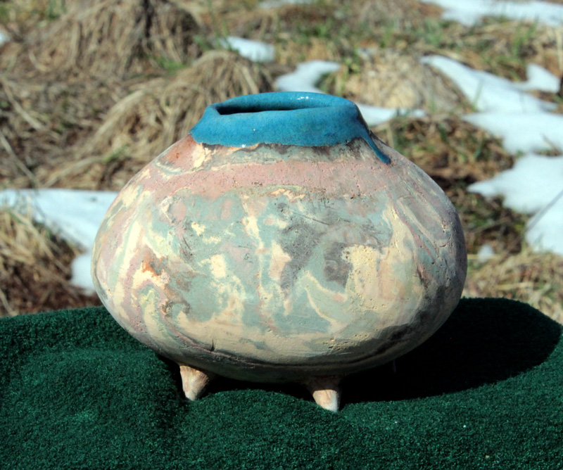 Počas 4. výpalu som urobil nové nerikomi vázy, ktoré sú vyrobené zo zmesi rôznych druhov hlín. Posledné tri som modeloval od ruky a tak sú pomerne nepravidelné a vybočené. Avšak nie je to na škodu. Však posúďte sami…
